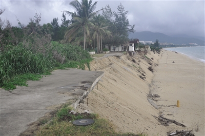 我省侵蚀严重岸段主要为沙质岸线,根据监测数据,与2016年海岸线对比,2017年平均侵蚀速度超过6.0米/年的有万宁市乌场春园湾岸段、三亚市亚龙湾金茂三亚丽思卡尔顿酒店附近岸段和琼海市博鳌印象岸段。