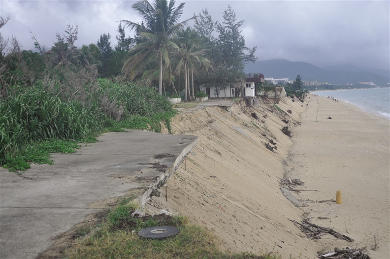 2017年,在海平面上升、海浪、风暴潮等自然因素作用以及人工涉海项目建设影响下,海南岛部分岸线受到海岸侵蚀的影响仍较为明显,对当地环境造成一定的影响。海岸侵蚀造成土地流失,房屋、道路、沿岸工程和旅游设施损毁,给沿海地区的社会经济带来较大损失。