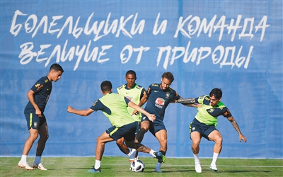 15日,巴西队在位于俄罗斯索契的训练基地进行训练,备战第一场小组赛。