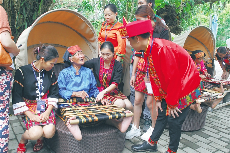 6月17日,三亚市吉阳区中廖村,海南热带海洋学院举办的首期“非遗学堂”研培班结业。“非遗学堂”首期黎锦技艺培训班开设了20多门课程,让学员深入研习了黎锦双面绣、传统植物染色、纹样制作、色彩搭配等传统技艺。“非遗学堂”由海南省非物质文化遗产保护中心指导,海南热带海洋学院创办,于今年4月在三亚市吉阳区中廖村挂牌。本报记者 孙婧/文 本报记者 袁琛/图
