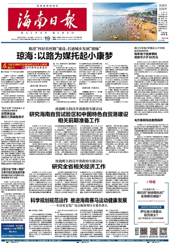 海南日报 头版 001 2018-06-191 2018年06月19日 星期二