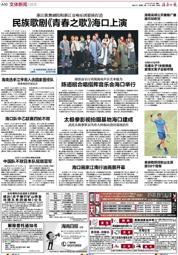 海南日报 文体新闻综合 010 2018-06-191 2018年06月19日 星期二