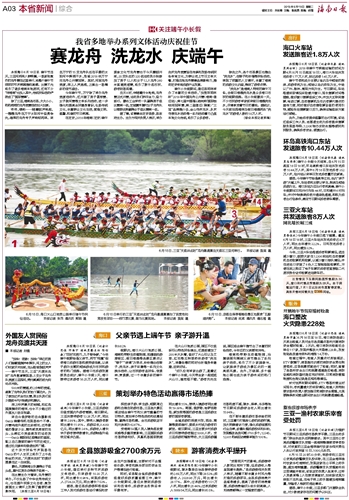 海南日报 本省新闻综合 003 2018-06-191 2018年06月19日 星期二