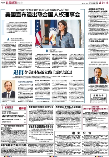 海南日报 世界新闻综合 007 2018-06-211 2018年06月21日 星期四