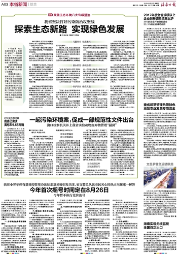 海南日报 本省新闻综合 003 2018-06-221 2018年06月22日 星期五