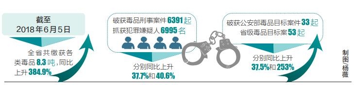 据了解,2016年11月8日以来,省委、省政府在全省范围内部署开展声势浩大的禁毒三年大会战,坚决向毒品宣战,强力攻坚“八严”工程,持续掀起了禁毒人民战争新高潮,推动禁毒工作取得显著战果。