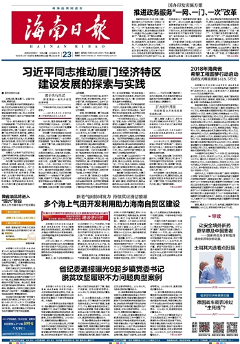 海南日报 头版 001 2018-06-231 2018年06月23日 星期六