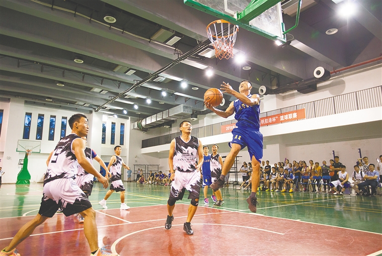 第二届“半山半岛帆船港杯”篮球友谊联赛日前在三亚外国语学校开赛,来自三亚海警、边检、海关、公安、中科院深海所等单位的9支队伍参赛,共助三亚全民健身运动发展。 本报记者 武威 摄