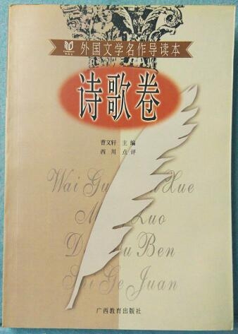 西川是当代诗坛的全能型诗人,诗歌、随笔、翻译、批评等方面俱有极高的成绩,令人佩服。我早年读他点评的《外国文学名作导读本·诗歌卷》,收益很大,他点评的这本外国诗歌的精选读本收录了从古希腊到现代主义鼎盛时期的最具代表性的诗歌作品上百首,每首诗都附有详细的注释以及甚为精当的评论,注释与评论皆可读性强,西川既吸收了前人解读成果,又把自己的创作经验心得融汇其中,使得注释与评论部分成为西方诗歌入门的最佳路径。