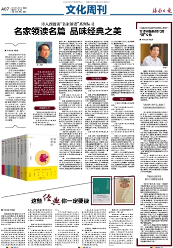 因现在的诗词读物与文化节目较多,鱼龙混杂,许多读者会有选择上的困扰。6月9日,海南日报记者采访多位专家、学者,请他们为大家推荐雅俗共赏的诗词读物与文化节目。