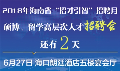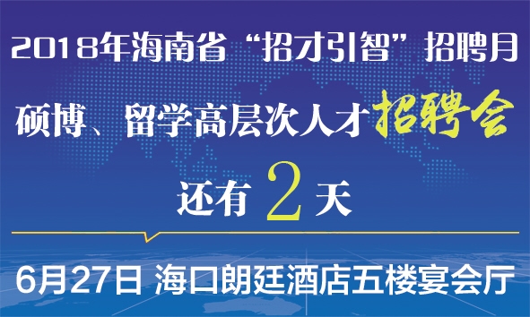 2018年海南省“招才引智”招聘月硕博、留学高层次人才招聘会还有2天