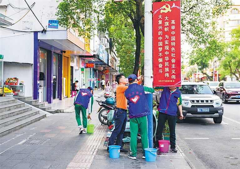 万隆社区位于万宁市城区中心,是万宁城区人口最密集、经济最活跃的区域之一。“因为人流量大、经济活跃,以前经常见到乱搭建、乱张贴、乱停放等现象,市容环境很差。”万隆社区党支部书记詹达能说。