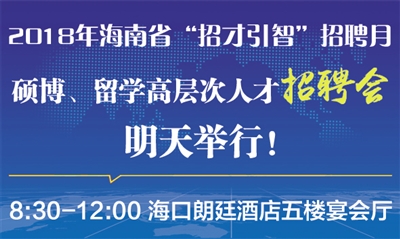 2018年海南省“招才引智”招聘月硕博、留学高层次人才招聘会明天举行!