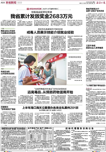 海南日报 本省新闻综合 004 2018-06-261 2018年06月26日 星期二