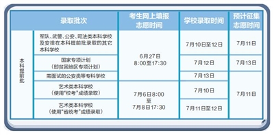 记者了解到,本科提前批文史类、理工类、体育类学校,实行梯度志愿的投档录取模式,设6个有先后顺序的学校志愿,每所学校设6个专业志愿和专业服从调剂志愿;须面试的专科批实行梯度志愿的投档录取模式,设3个有先后顺序的学校志愿,每所学校设6个专业志愿和专业服从调剂志愿;国家专项计划实行平行志愿的投档录取模式,设6个学校志愿,每所学校设6个专业志愿和专业服从调剂志愿。