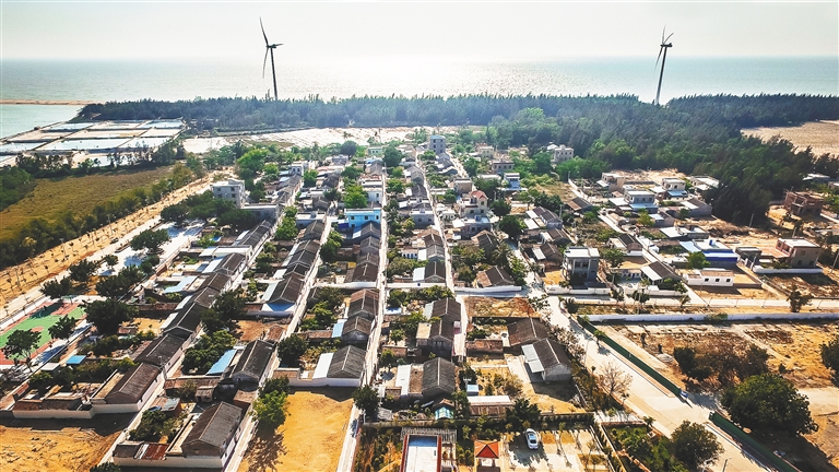 村庄的幸福,还源于村集体经济的不断壮大。下通天村村集体经济收入来源于土地承包金,年收入137万元。村里土地总面积6370亩,其中水田166亩,旱田153亩,坡园地500亩,林地2000亩。近年来村里海水养殖业发展较快,全村现有海水养殖池面积800亩,是新龙镇户均养殖面积最多的村庄。此外,下通天村还种有西瓜700亩、芒果110亩和养殖咸水羊120头。