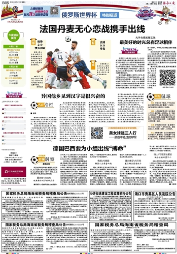 海南日报 俄罗斯世界杯特别报道 013 2018-06-271 2018年06月27日 星期三