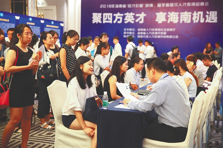 记者现场还看到,知名智库机构中国(海南)改革发展研究院和中国南海研究院招聘会上发出了求贤令。中国(海南)改革发展研究院招聘多名副研究员、助理研究员及研究实习员,中国南海研究院招聘政治学、国际关系、国际法等学科研究员多个岗位。为搭建政府、企业、高层次人才三方交流平台,本场招聘会现场还举办了“2018年海南招才引智硕博及留学高层次人才沙龙”。
