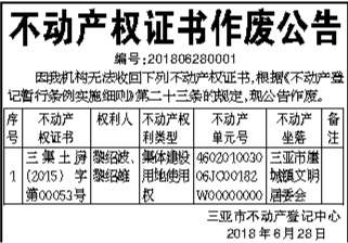 不动产权证书作废公告