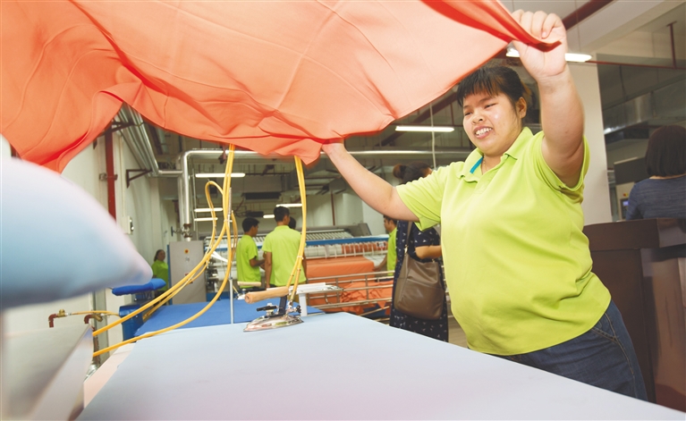 6月28日上午,海航自强洗衣社三亚分社正式开业,15名脱贫户、残障人士成为首批员工。