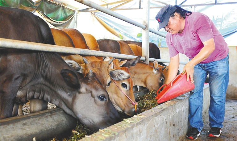 1990年,从贵州农村走出来的杨星,进入儋州两院园林设计专业学习,后又进入海南大学任教。5年前,看中了澄迈给予农业大力度的扶持政策、长安墟和牛牛市繁荣、草料来源丰富和生态条件好等优势,杨星选择在“冷水冲”创业。建起了面积310多亩的农庄。
