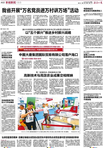 海南日报 本省新闻综合 002 2018-06-301 2018年06月30日 星期六