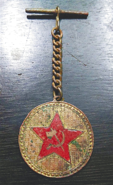 要问党徽是什么图案,很多人会下意识地说是“镰刀斧头”,因为毛泽东领导的工农革命军的第一面军旗上就是镰刀斧头的图案,而且镰刀斧头的印象早已通过文学作品的传播深入人心,可是这枚甘卓棠烈士使用过的香港金属业工会会员证章又清晰地出现了镰刀锤头组合的标志。