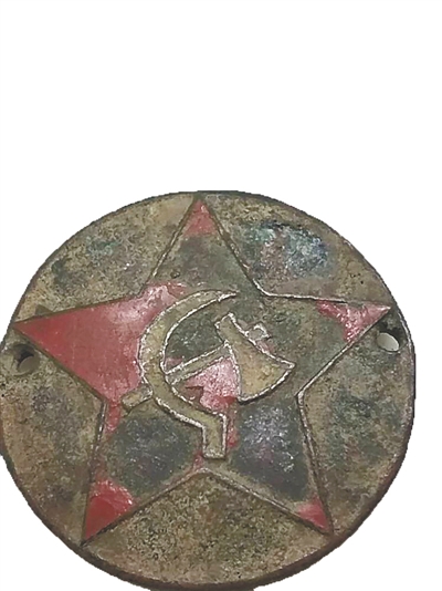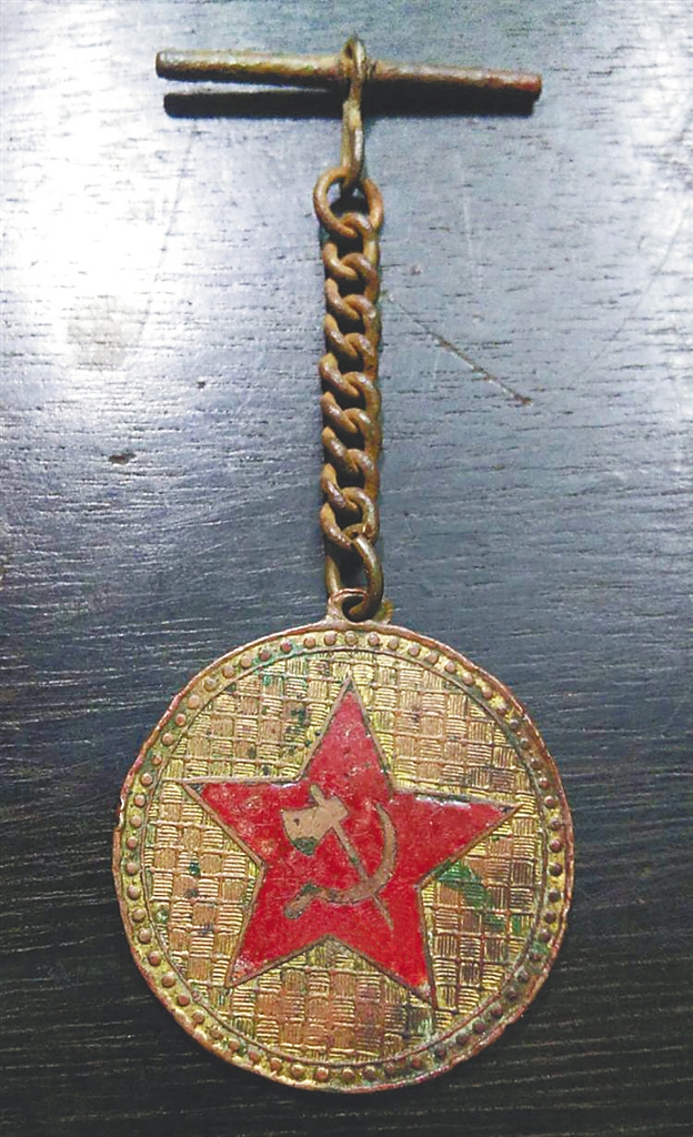 井冈山博物馆珍藏了一枚起义参加者钟步全戴过的帽徽,这枚银质帽徽呈五角星形,主体就是镰刀斧头。