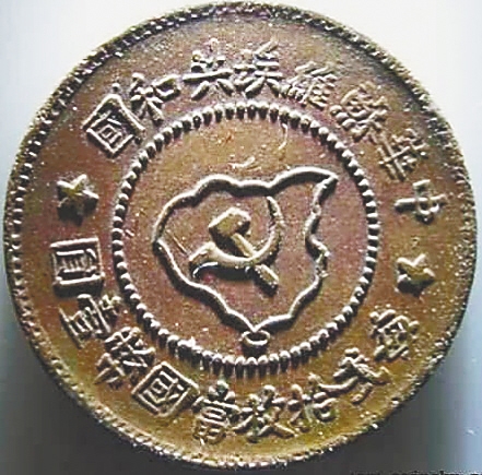 1931年,中华苏维埃政权成立,受共产国际影响,国徽附带着党徽图案再次由镰斧组合变为镰锤组合。