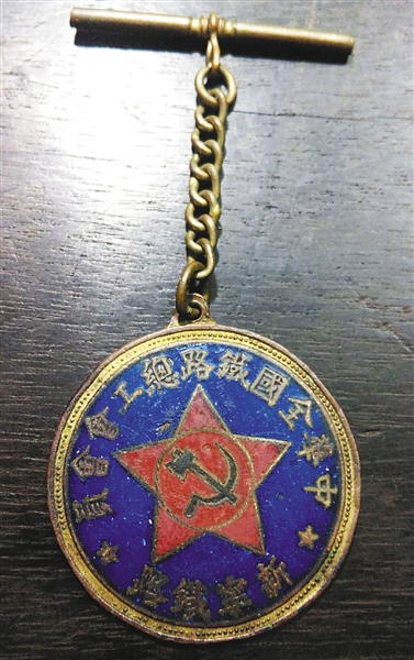 在广东收藏协会副会长陈建平提供的另一枚1924年成立的中共早期组织“中华全国铁路总工会新宁铁路会员证章”上,红色五角星内却清晰地出现了镰刀斧头组合的图案,看来镰刀斧头和镰刀锤头之争不仅现在,早在大革命时期就有体现。