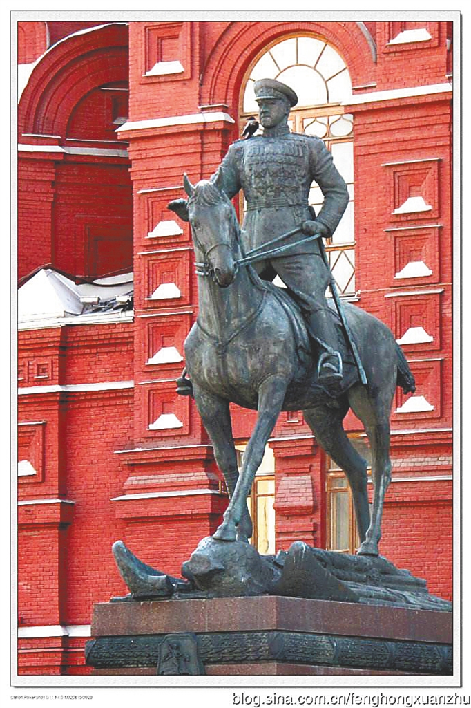 既然来俄罗斯,就不能错过俄罗斯的政治中心——克里姆林宫和宫墙外的红场。克里姆林宫的北面是朱可夫广场,朱可夫元帅的雕像很雄伟,但最吸引我的是广场东面的一排纪念品商铺,那里售卖各种纪念品,有苏军的军帽、勋章、冰箱贴等。在所有的纪念品里,最让我着迷的是苏军的船型军帽。小的时候喜欢看军事题材的影片,憧憬着什么时候自己也能穿上一身帅气的军装指挥千军万马。在各类军帽中,最喜欢的就是船型军帽,既威武又潇洒。小的时候想得到一顶真正的军帽是一件不太可能的事,我们就自力更生用报纸像叠纸船一样叠一顶帽子戴在头上,虽然材质不同,但感觉还是很拉风的。