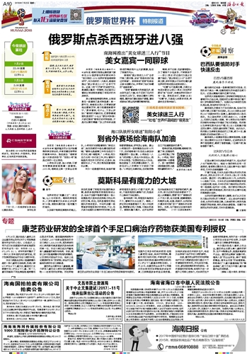 海南日报 俄罗斯世界杯特别报道 010 2018-07-021 2018年07月02日 星期一