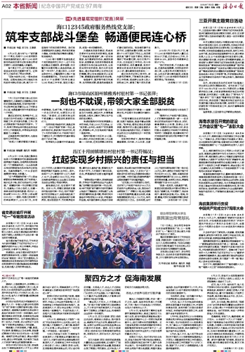 | 海南日报 本省新闻纪念中国共产党成立97周年 002 2018-07-021 2018年07月02日 星期一 |