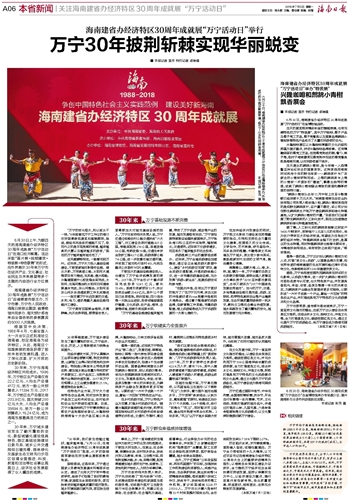 | 海南日报 本省新闻关注海南建省办经济特区30周年成就展“万宁活动日” 006 2018-07-021 2018年07月02日 星期一 |