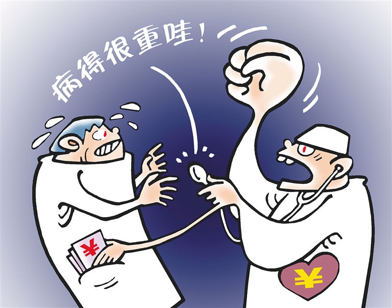明明只是一个小毛病,结果到了医院,反而成了吓人的大问题,于是,各类检查自不可少,而且,又是输液,又是开药,一通下来几千上万花出去了,这是不少人到医院就医的体验。夸大病情,虚构病情,这些有辱医德之举,反而成为一些医院骗财的重要方式。这正是: