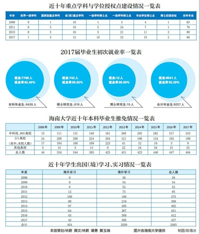 2018年4月13日,习近平总书记在庆祝海南建省办经济特区30周年大会上指出,“要支持海南大学创建世界一流学科”,让海南大学全体师生倍感振奋,深受鼓舞。学校坚持以习近平新时代中国特色社会主义思想为引领,坚持社会主义办学方向,落实立德树人根本任务,抢抓世界一流学科建设、部省合建、“聚全省之力办好海南大学”等重大发展机遇,坚决贯彻落实中央和省委、省政府重大决策部署,突出“热带、海洋、旅游、特区”四大办学特色,办学条件日益完善,办学水平不断提升,办学质量稳步提高,服务国家战略和地方经济社会发展的能力明显增强。