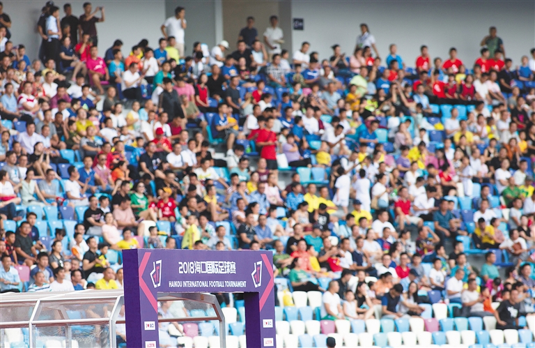 当晚,海口市五源河体育场首次迎来国际赛事——2018海口国际足球赛开赛。