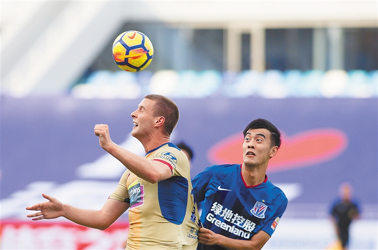 7月6日,中超球队上海绿地申花和澳超球队纽卡斯尔喷气机在海口市五源河体育场比赛。
