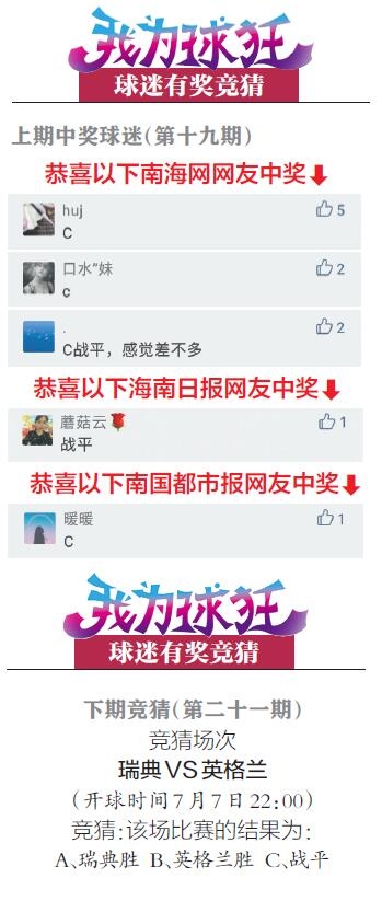 A、瑞典胜 B、英格兰胜 C、战平