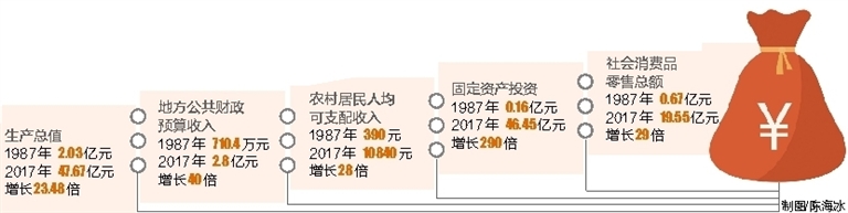 回顾这30年,琼中的发展日新月异,成就辉煌。生产总值从1987年的2.03亿元增长到2017年的47.67亿元,增长23.48倍;地方公共财政预算收入从1987年的710.4万元增长到2017年的2.8亿元,增长40倍;农村居民人均可支配收入从1987年的390元增长到2017年的10840元,增长28倍;固定资产投资从1987年的0.16亿元增长到2017年的46.45亿元,增长290倍;社会消费品零售总额从1987年的0.67亿元增长到2017年的19.55亿元,增长29倍。