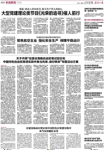 海南日报 本省新闻时政 002 2018-07-091 2018年07月09日 星期一