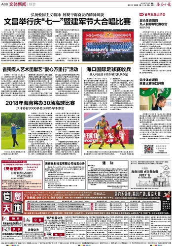 海南日报 文体新闻综合 008 2018-07-091 2018年07月09日 星期一