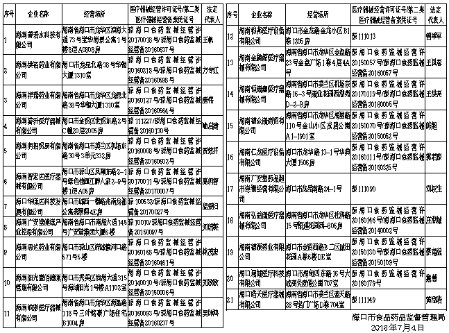 拟注销21家企业《医疗器械经营许可证》《第二类医疗器械经营备案凭证》名单
