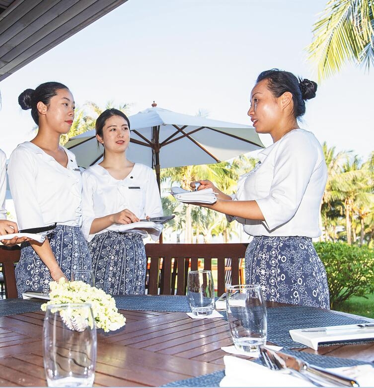 “通常一家酒店的开业,管理职位与一线服务类职位需求量大,其中,技能级别较高的餐厨、服务等技能型人才,以及能弥补酒店各个部门之间的服务空白点、具备较强补位意识的服务型人才最为紧缺。”三亚半山半岛洲际酒店相关负责人张园苑说,酒店要为每一位员工做好顶层设计,同时要为每个层级的员工提供交叉岗位实践机会、针对性的培训课程,最大限度地发挥每位员工的潜能。
