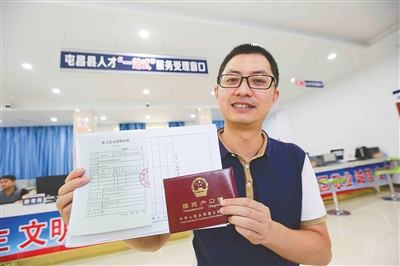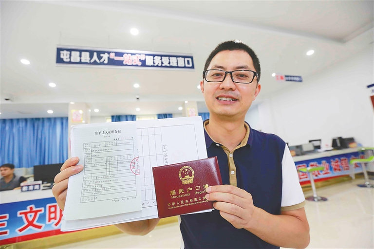 图为来自海南太极海洋药业有限公司的张小宏办理落户手续。