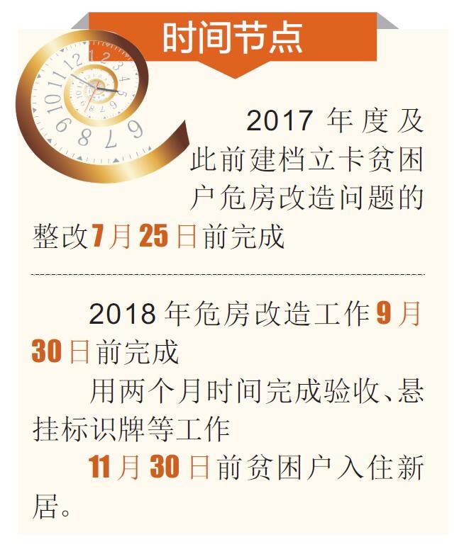 为确保贫困户按时住上新房,儋州市要求各镇至少配备3名有一定专业素养、熟悉危房改造工作的专职人员,专门负责2017年度及以前建档立卡贫困户危房改造问题整改,以及2018年度危房改造的报建、质量安全巡查、竣工验收、补助资金拨付、拆除旧房、纸质档案收集整理、农户信息录入、协助危房鉴定等工作。