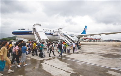 7月12日,海南实施59国人员入境旅游免签新政以来我省开通的首条洲际航线——“三亚⇌伦敦”航线开通,该航线首架航班CZ651从三亚凤凰国际机场顺利起飞。据悉,“三亚⇌伦敦”航线由中国南方航空公司执飞,采用空客A330-200型宽体客机,每周两班,每周四、周日执行,飞行时间约为12小时45分钟。