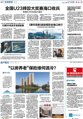 海南日报 文体新闻综合 015 2018-07-131 2018年07月13日 星期五