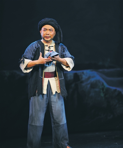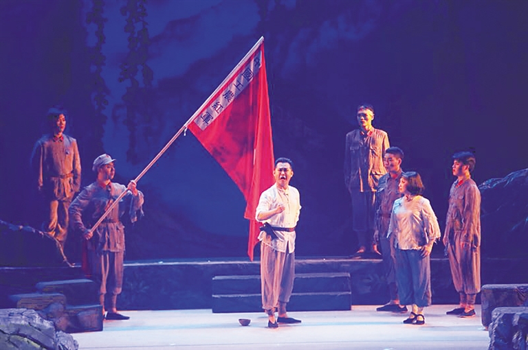 7月6日晚上,北京丰台区中国评剧大剧院,一段激昂的唱腔回荡在剧院中。这是大型近代革命琼剧《母瑞红云》第六场“突围下山”的高潮部分,讲述冯白驹带领战友在硝烟之中,从母瑞山突围下山,场面热血沸腾,慷慨激昂。