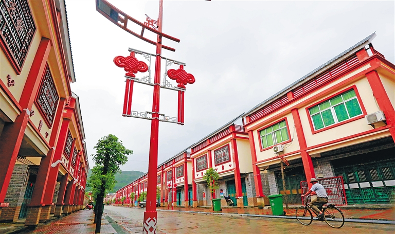 7月12日,在琼中黎族苗族自治县黎母山镇,已经完成立面改造的小镇面貌焕然一新。